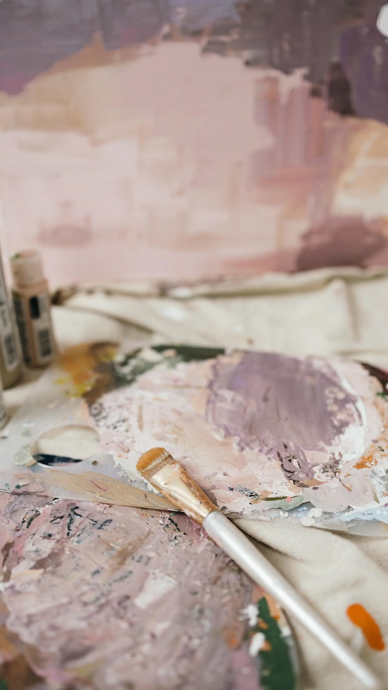 Colorful abstract art focusing on pinks, blues, and other warm tones.